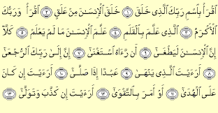 Translation: Say (O Muhammad) if the ocean were ink (with which to write out) the words of my Lord (Praises, signs, favors, mercy) sooner would the ocean be exhausted than would the words of my Lord, even if were added another ocean like it for its aid."(Pehli Soorat jo Allah ki traf sy naazil howi wo ye hai)